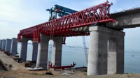 The first set of 2700t span by span launching gantry designed by Tolian is working smoothly in Pingtan Bridge.